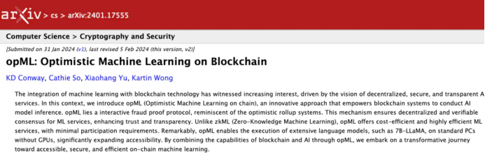 OAO用opML为 ML计算创建可验证证明,这些证明可在区块链上进行验证。这为区块链中的AI开辟了新的可能性。