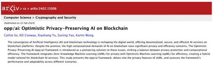 opp/ai, Optimistic隐私保护人工智能,把保护隐私安全的zkML和更有效率的opML结合。